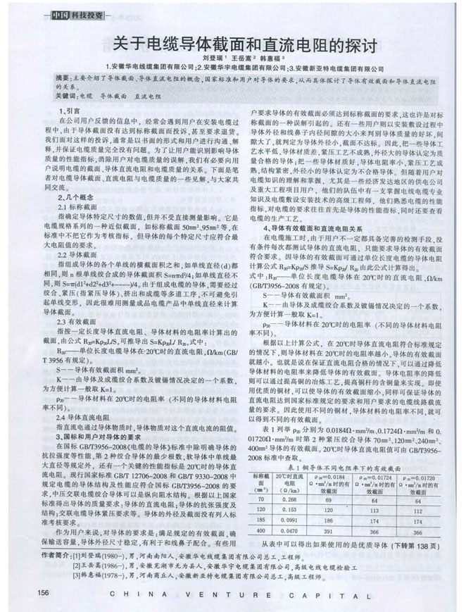 關(guān)于電纜導(dǎo)體截面和直流電阻的探討